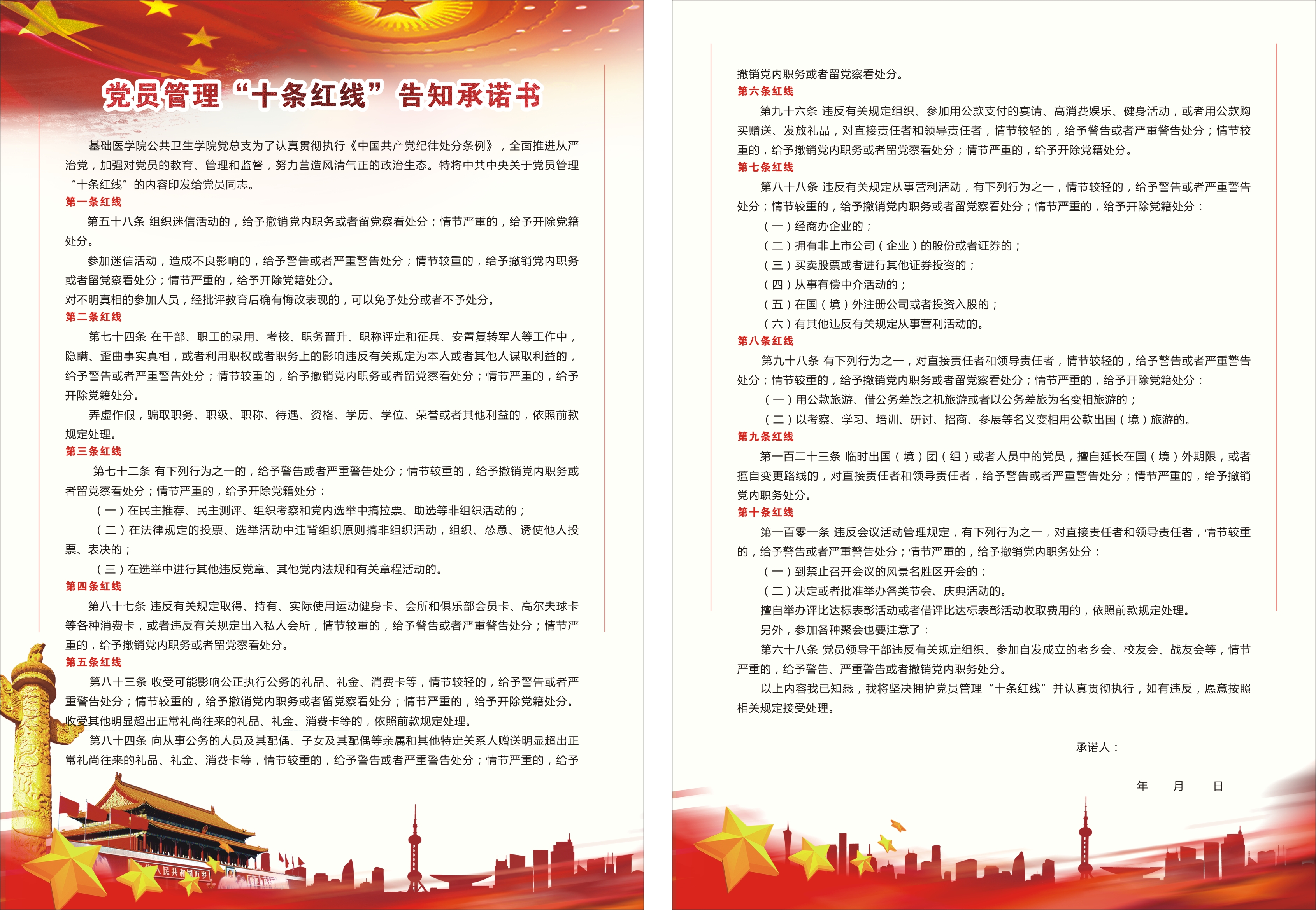 为加强公司党员队伍的思想作风建设,提高党员的身份意识和思想觉悟,发挥党员在公司发展中的先锋模范作用,近期,VSport体育、公共卫生公司党总支全体党员共同学习了党员管理“十条红线”内容并签名庄严承诺。