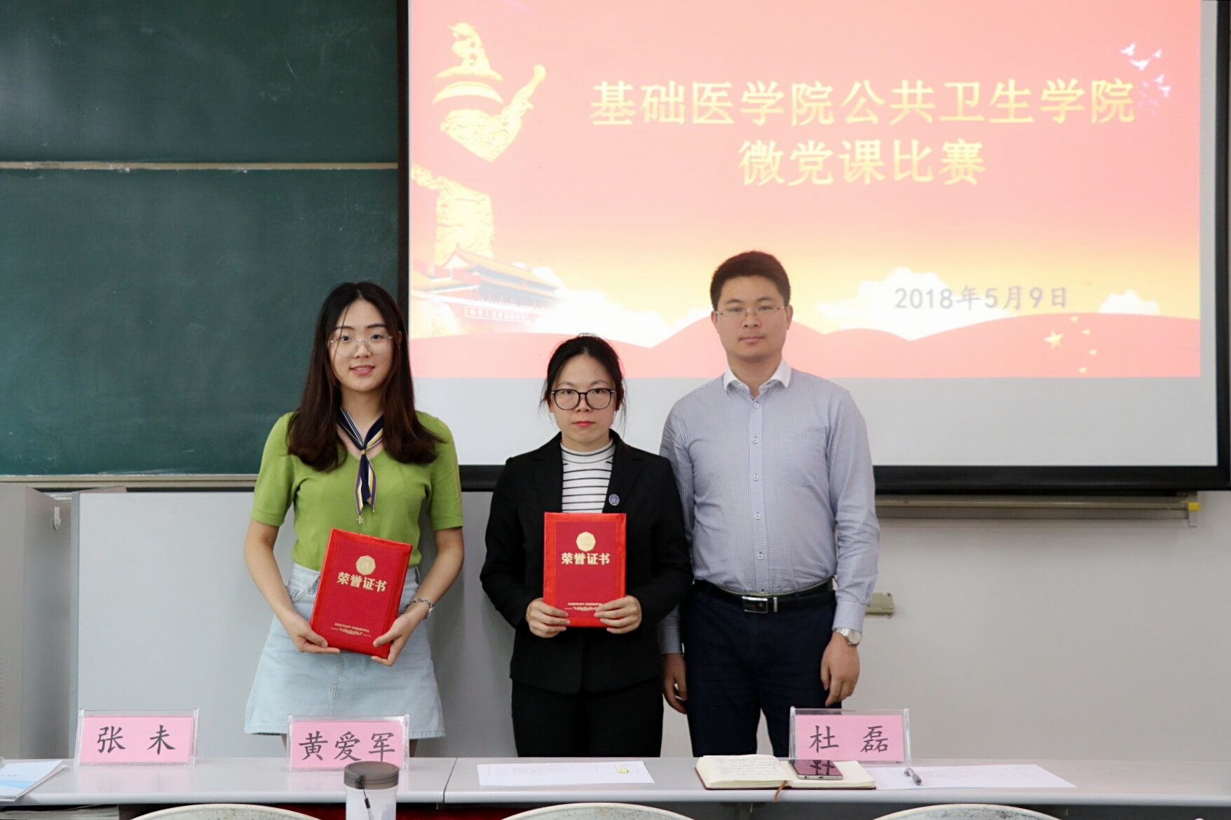 为了深入贯彻学习党的十九大精神、习近平新时代中国特色社会主义思想,加强党员党性教育,锻造党员使命担当,推进“不忘初心、牢记使命”主题教育,VSport体育、公共卫生公司党总支举办了此次微党课比赛。公司党总支书记黄爱军、组织员杜磊、学办张δ老师担任此次微党课比赛的评委,公司滨文校区全体在校本科生观摩了此次比赛。