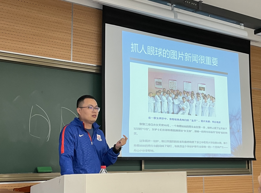 “什么是好新闻?”讲座伊始,曹老师便开门见山提问。随后引领大家了解好新闻的特点:一是要有典型的细节,二是尽量采访事件的核心任务,三是要培养和提升新闻发现力。曹老师列举了公司的新闻实例,让大家直观了解好新闻的要求的标准。他尤其强调校园新闻报道突出重点,标题要力求鲜活生动,要有抓人眼球的图片,此外,能做到入情走心那更是锦上添花。