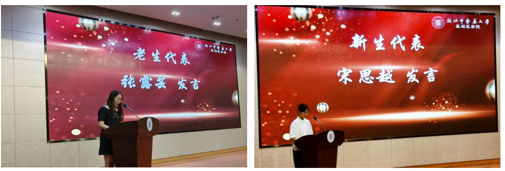 导师代表丁兴红研究员向新生们表达了深切祝福,他将研究生比作是中医药科研事业的“金种子”,要注重专业知识和创新能力的提高,发扬自我探索,自我学习,刻苦钻研的求学精神。张露芸同学分享了两年来研究生生活的感悟,宋思越同学作为新生代表表示将牢记“求本远志”的校训,秉承“大医精诚、锐意创新”的精神,以积极健康的心态应对研究生生涯将面临的挑战和磨练,稳扎稳打,奋楫笃行。
