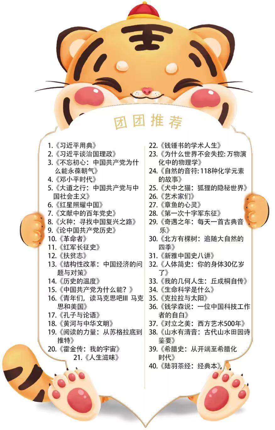 完成一本“百年党史”经典阅读。研究生利用寒假时间,选择一至两本经典书籍,如《中国共产党简史》《中华人民共和国简史》《改革开放史》《社会主义发展史》等,阅享书香,品味经典,体会阅读的乐趣,汲取知识的力量,用文字记录下所思、所感、所悟,并形成“读书笔记”,不断提高自身综合素质。可参考公司团委官微“青春浙中医大”推荐书目(见下图)