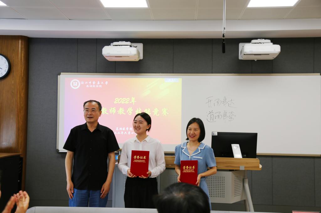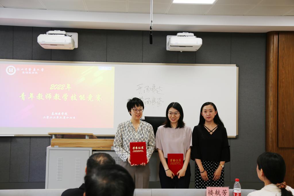 比赛根据教学设计和现场说课两个模块综合成绩高低产生一、二、三等奖和优胜奖。牛红霞、徐岚溪两位老师获一等奖,黄宏、胡梦娇、叶肖琳三位老师获二等奖,王磊、余洁茹、王晶晶、司鹏飞、杨辉和许晓莹六位老师获三等奖,姜涛、武为、黄雪莲、许家栋、柴毅和方传明获优胜奖。