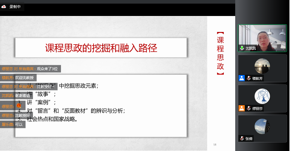 沈凯凯教授结合十余年教学经验,从一个普通一线教师的视角,以方剂学课程为例,深入浅出地阐述了如何在“大思政”教育背景下在专业课中实施“课程思政”,形成专业课程与思想政治理论课同向同行,实现“立德树人”育人成效。会后,沈凯凯教授与参会教师分享了其参加青年教师技能竞赛“披荆斩棘”却又获得“风景无限”的心路历程。她鼓励青年教师要鼓足勇气攀登教学高峰,在青教赛这个“大熔炉”中锻造思想、锤炼品格、提升能力,怀着国家的深情、人民的感情、事业的激情,努力工作、敢于作为、勇于担当。