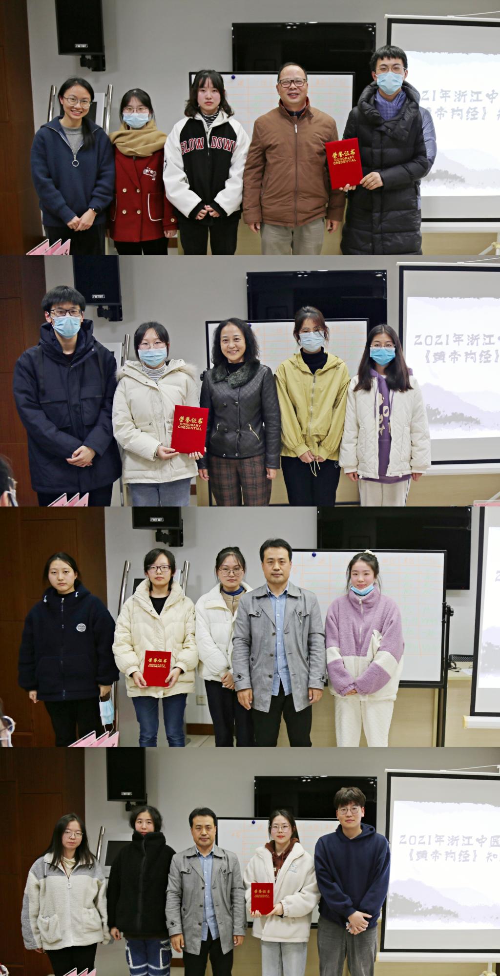 楼航芳副经理作开场致辞,她介绍了公司在经典课程教学中取得的优秀成绩,鼓励同学们再接再厉,学好中医经典,夯实中医基础。决赛题目覆《内经》原文记忆经文阐释和临床应用等不同层次的能力要求,分为必答题、猜秀、抢答题、阐述题、风险题五个环节,紧张又活泼。中医基础理论教研室的夏梦幻老师和傅丹青老师担任主持人整场比赛顺利有序,选手们表现踊跃,比拼激烈,精彩纷呈。经过几轮角逐,最终由梁博豪、施雨婷、袁淋熳和黄之彦组成的第一队获得一等奖,由马嘉琪、叶欣彤、李欣儿和余越如飞组成的第三队获得了二等奖,严亦慈、张中意、莘斯喻和王泓斐,周莹芝、李奕萱、冯慧颖和周晓青,两组队员获得了三等奖。