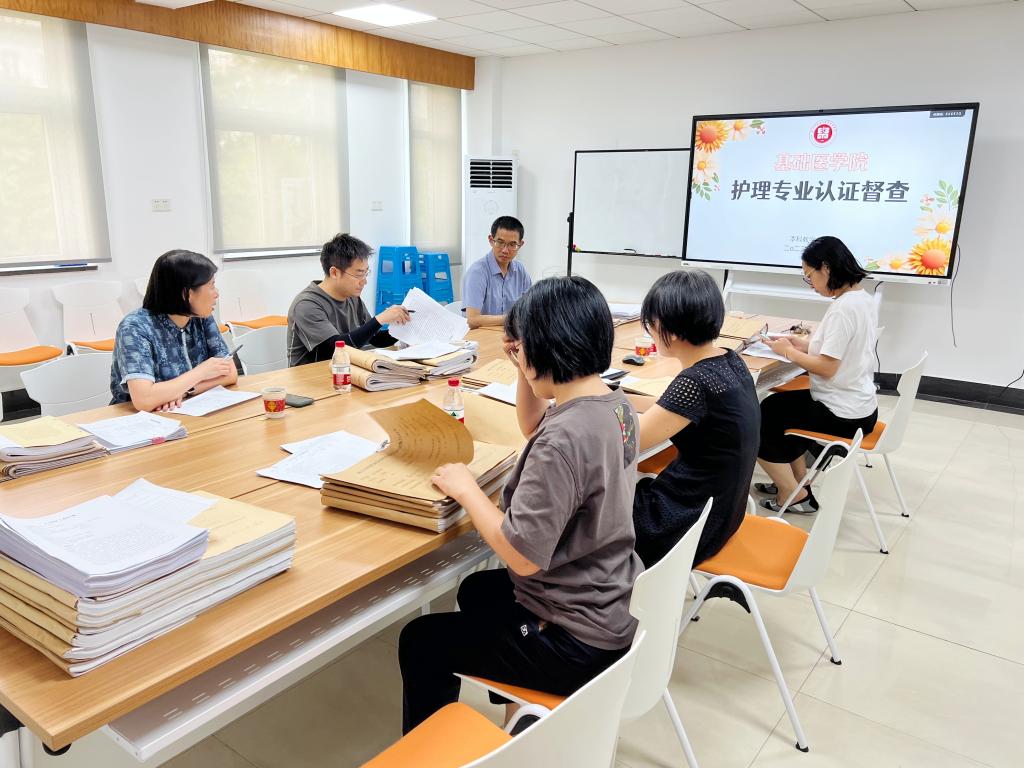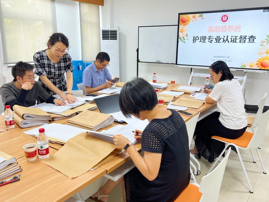 本次督查采用交叉互查的方式,检查内容包括上学期试卷、课程教学大纲、实验报告等教学基本资料,也包括基层教学组织简介、课程介绍、教学成果与特色等教研室内涵展示材料。参与检查的各位主任先对照护理专业认证及本科公司产品工作审核评估要求,进行了各项材料规范标准的学习,随后对照材料清单进行了细致检查,边检查边记录,对检查中发现的亮点特色和存在的问题进行详细记载。最后,所有检查人员对各自负责内容进行现场反馈,并提出了后续改进建议。